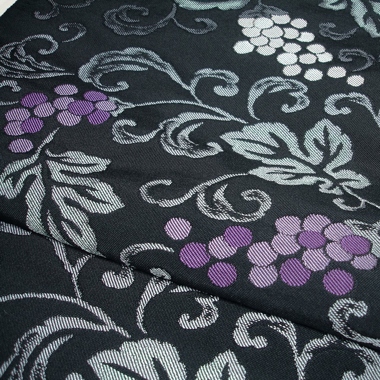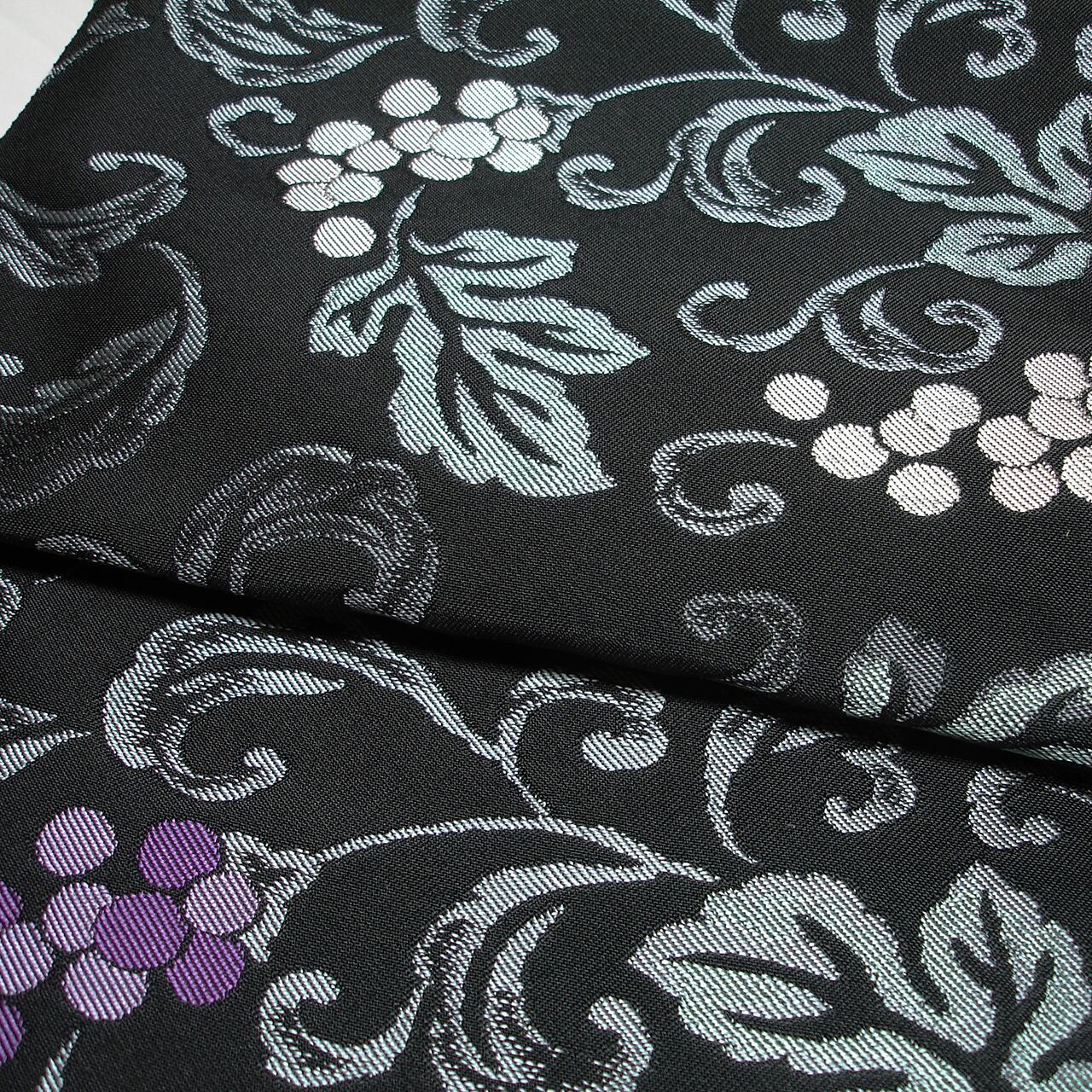 九寸名古屋帯/織 ぶどう文 藍下黒 正絹 西陣織
