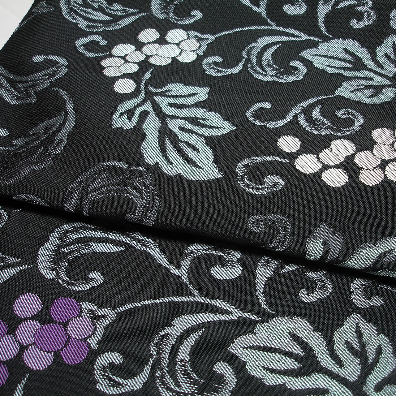 ぶどう唐草文をアンティーク調に表現した西陣織の九寸帯です。
