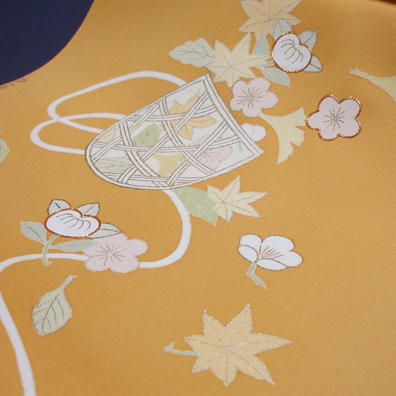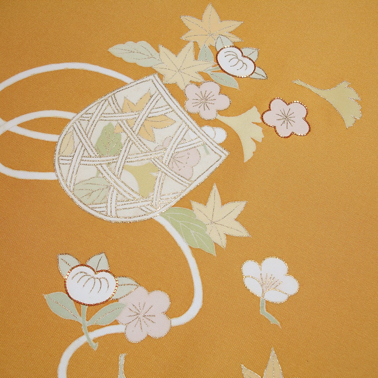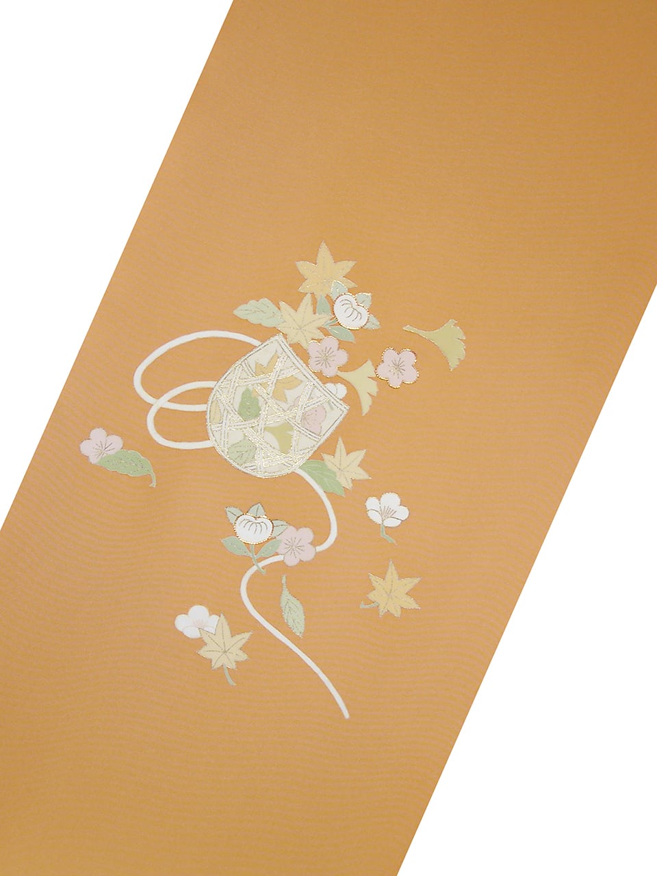 九寸名古屋帯/染 花籠 山吹色 友禅 正絹 塩瀬 染帯
