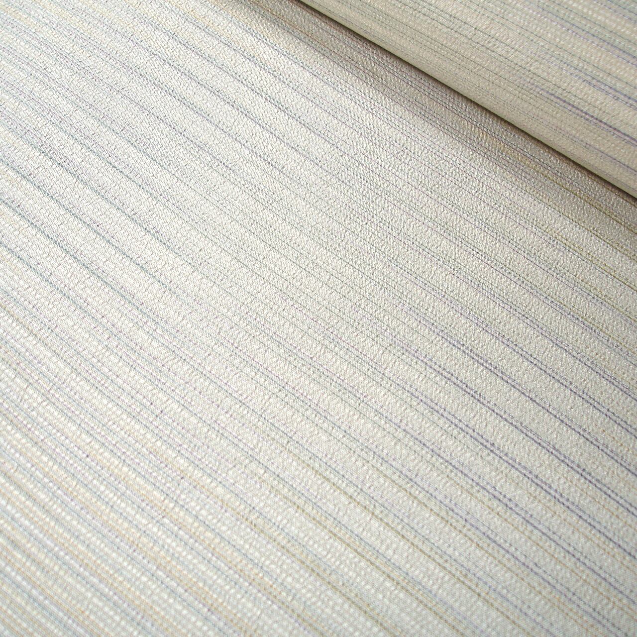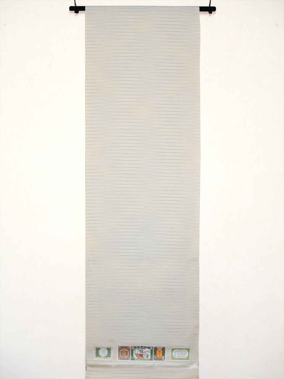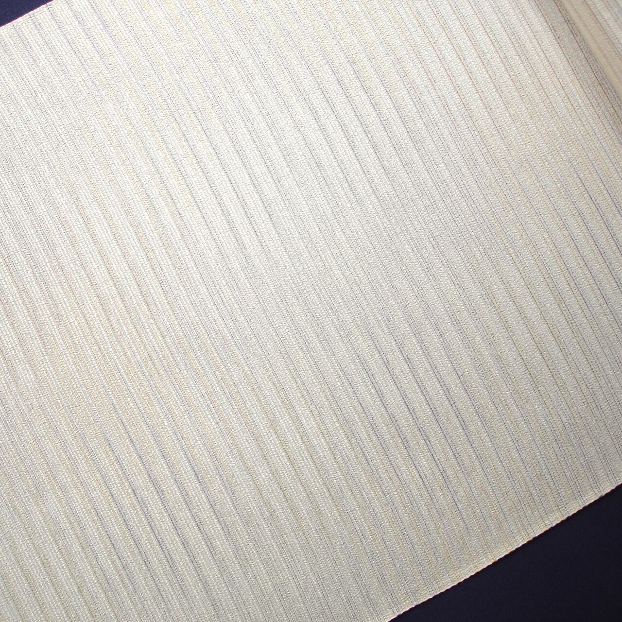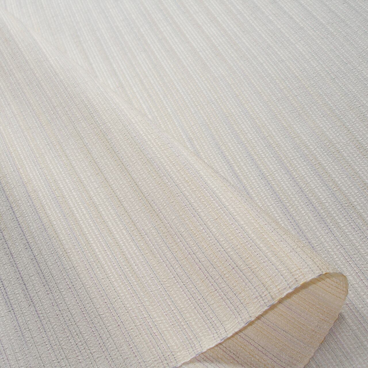 淡く明るい色糸を使って控えめな横縞模様を表した、無地感覚の本塩沢(ほんしおざわ)の着尺です。