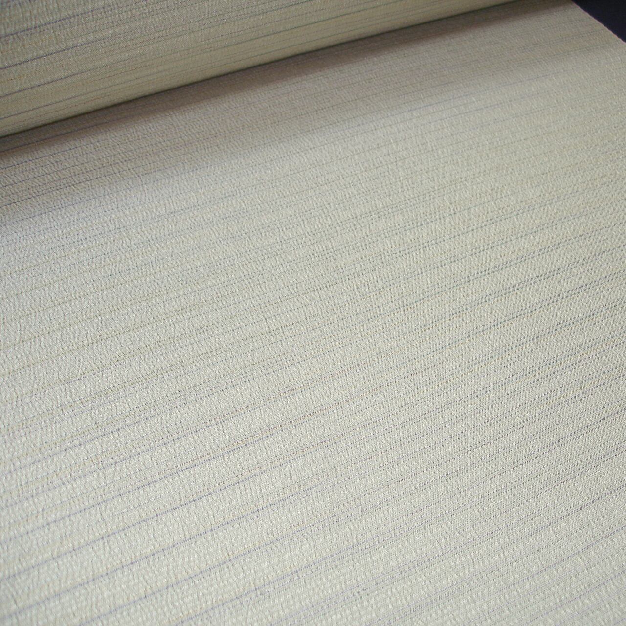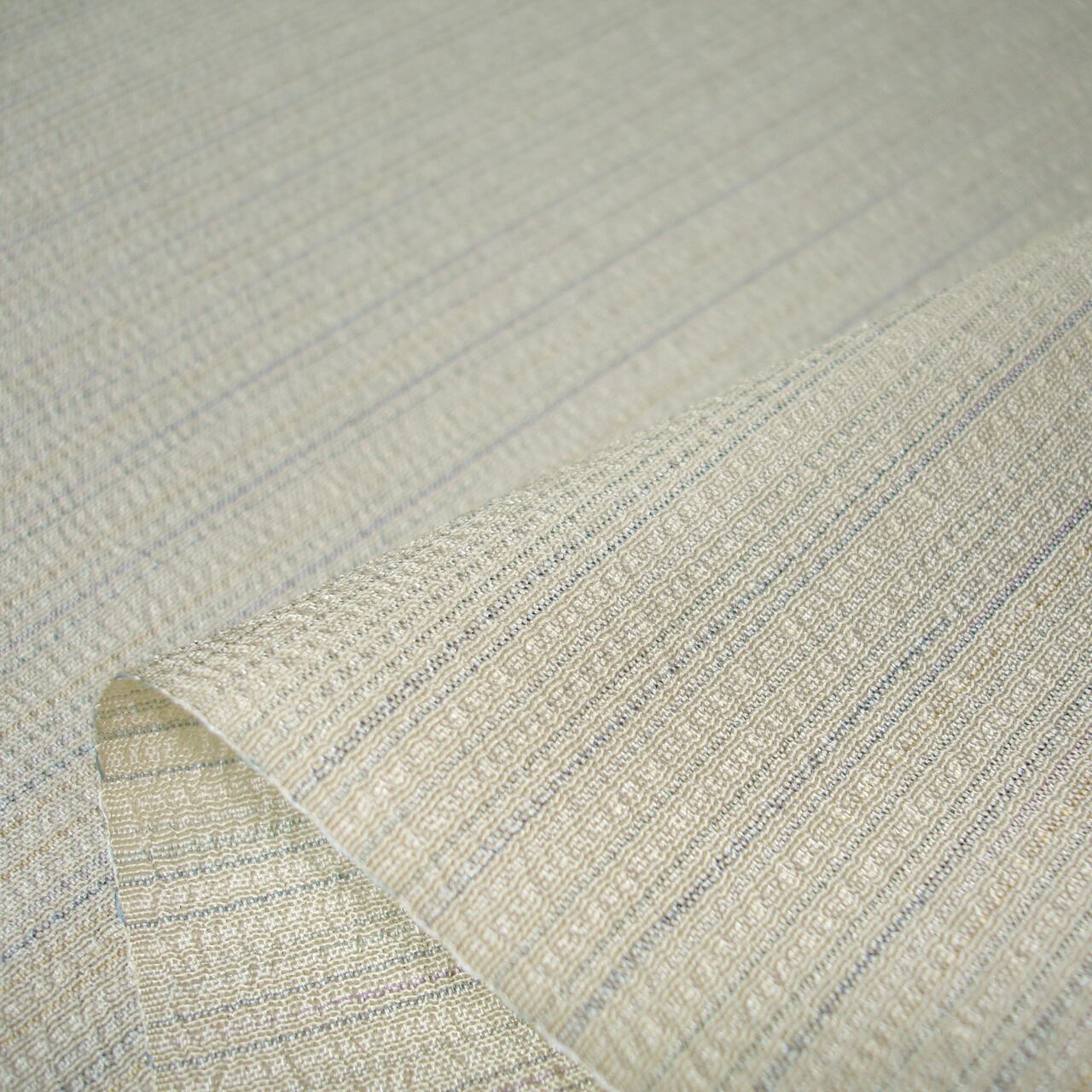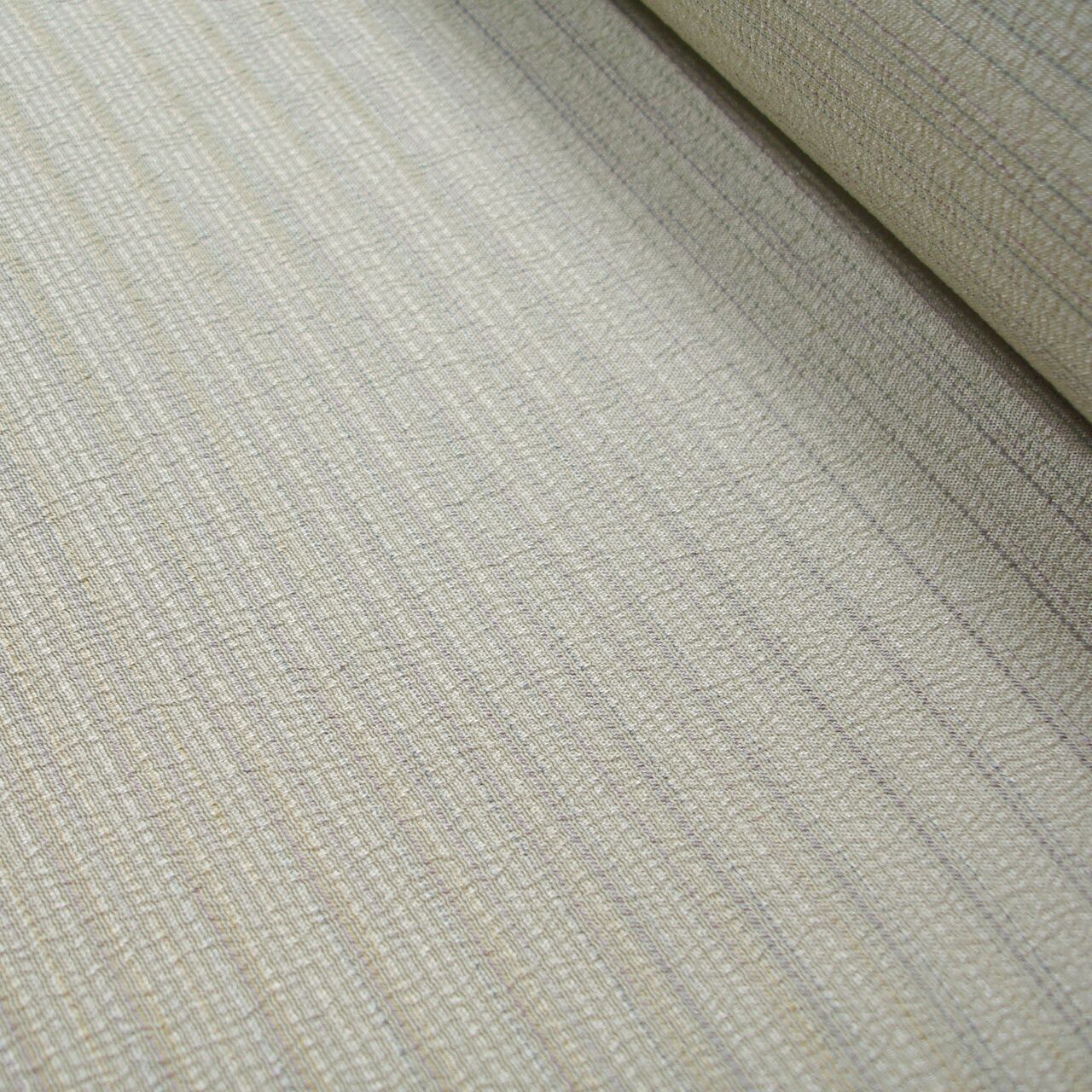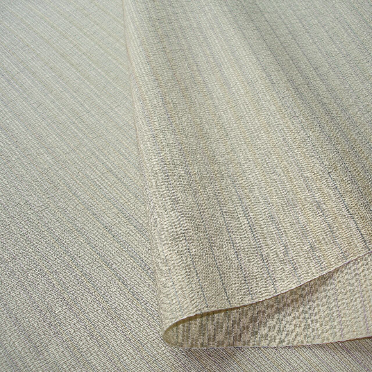 淡く明るい色糸で控えめな横縞模様を表した、無地感覚の本塩沢(ほんしおざわ)の着尺です。