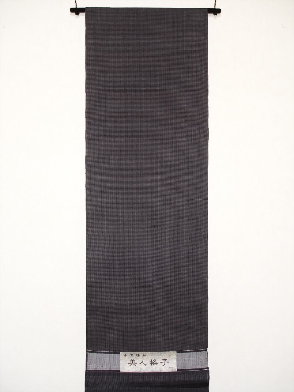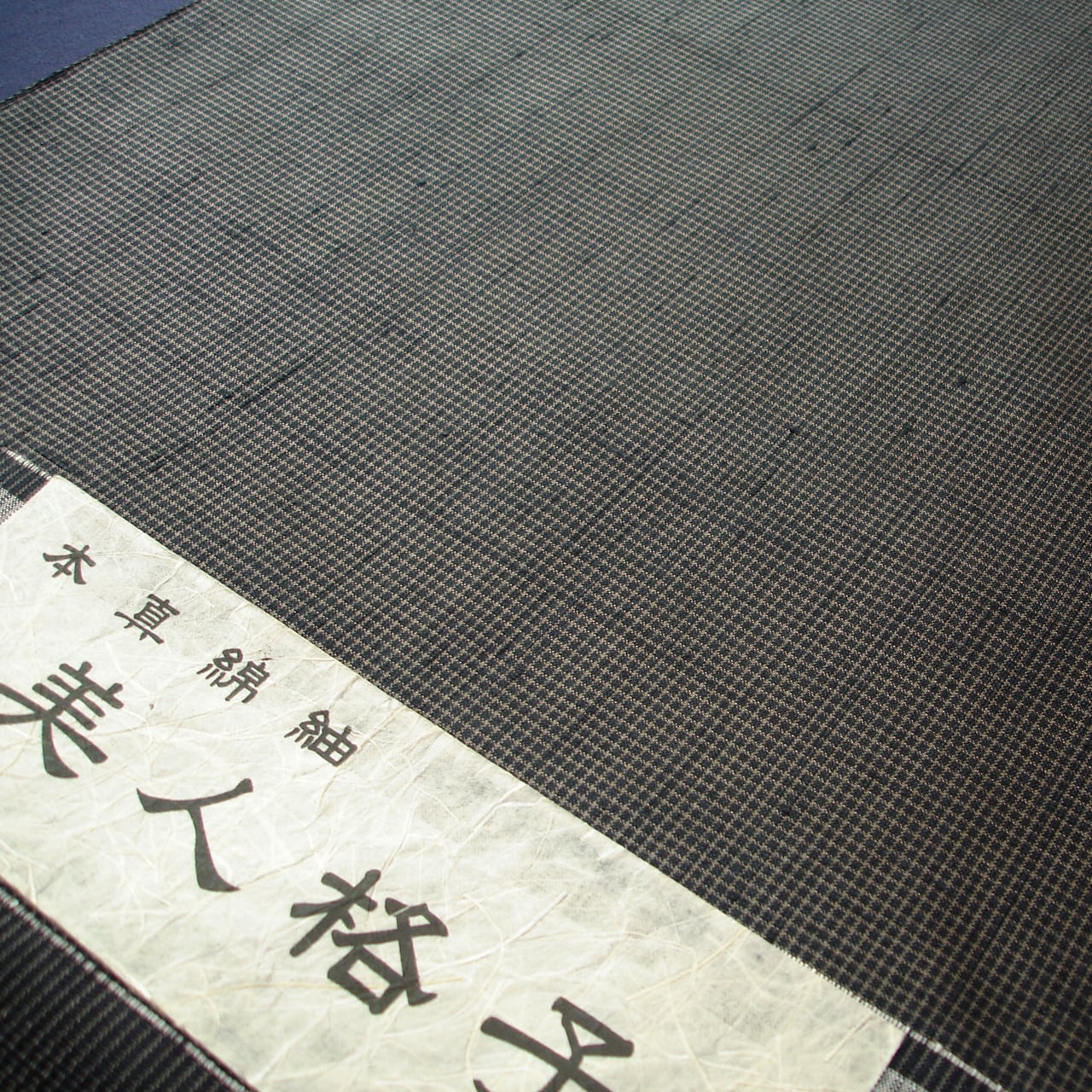 紬着尺 みじん格子 黒茶 真綿紬 十日町織物