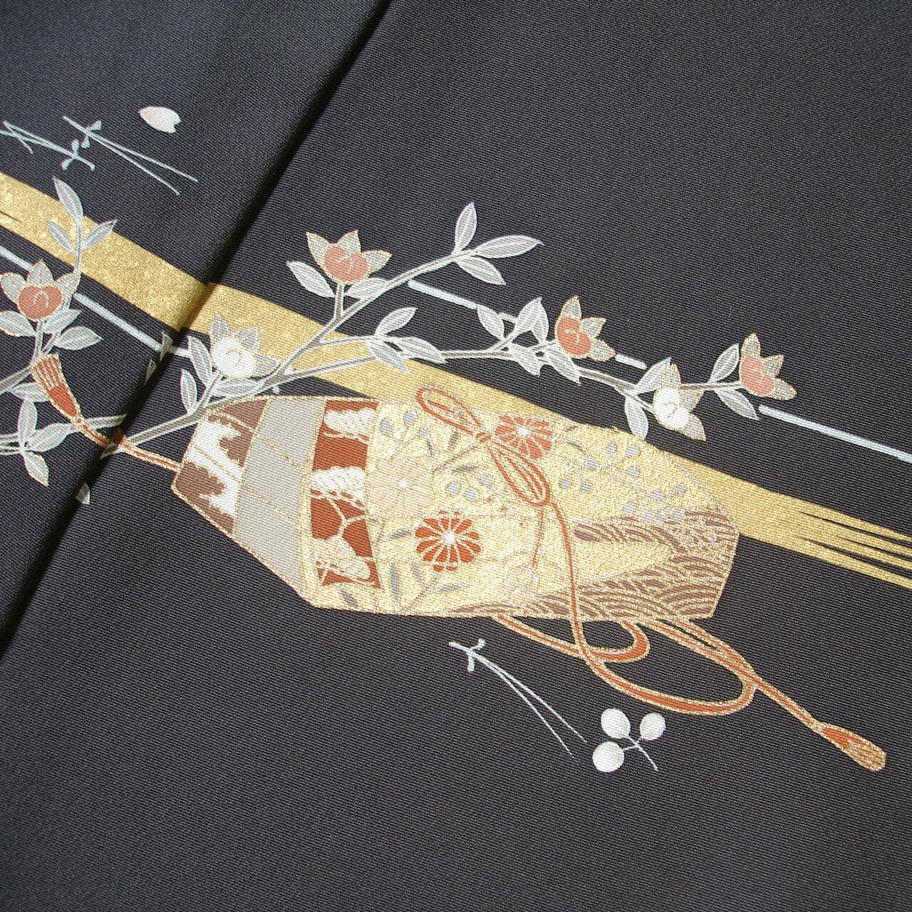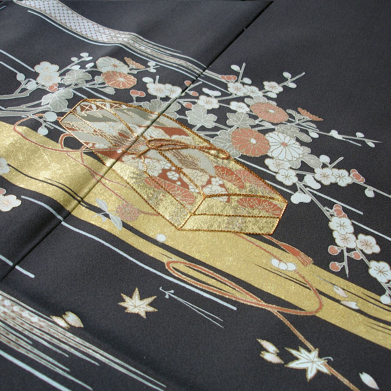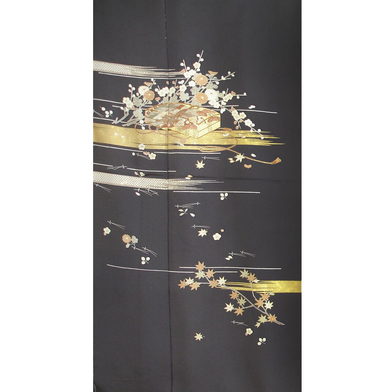 訪問着 文箱 紺鼠 手描友禅 正絹