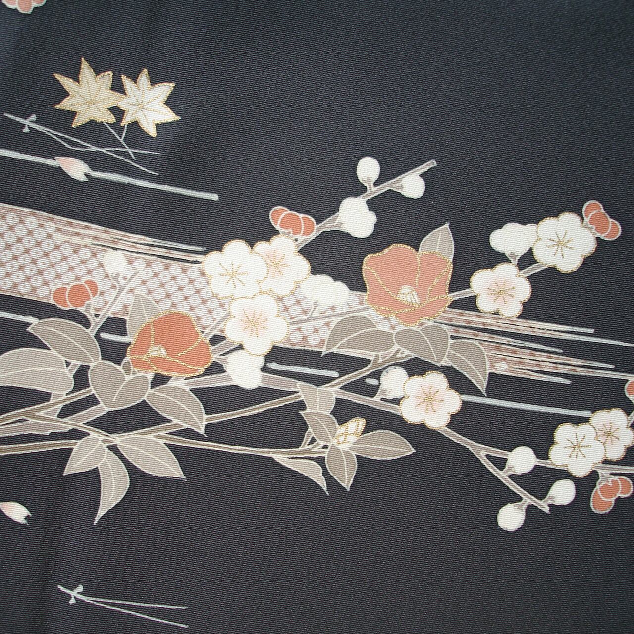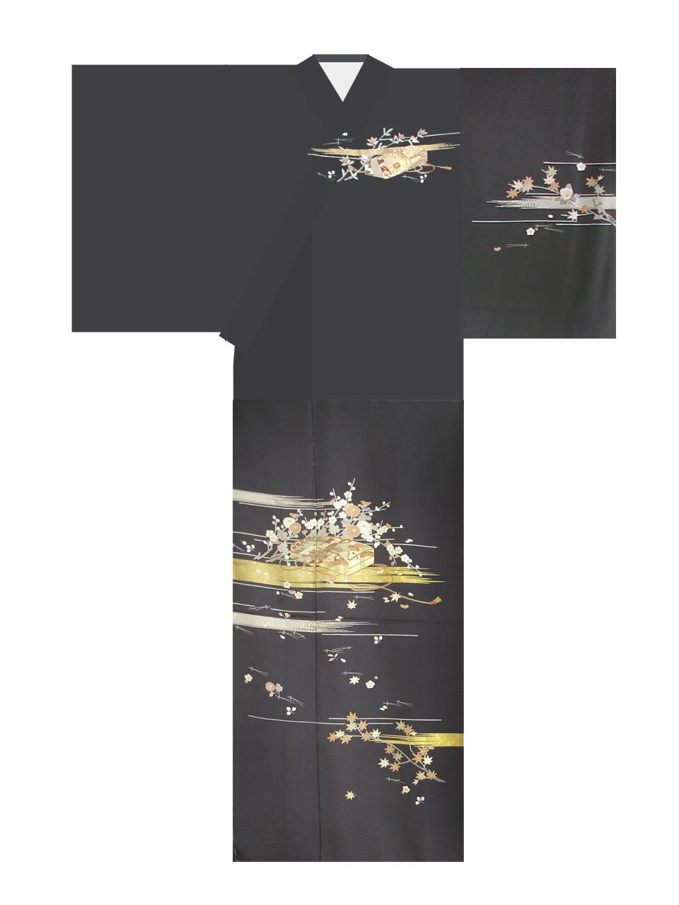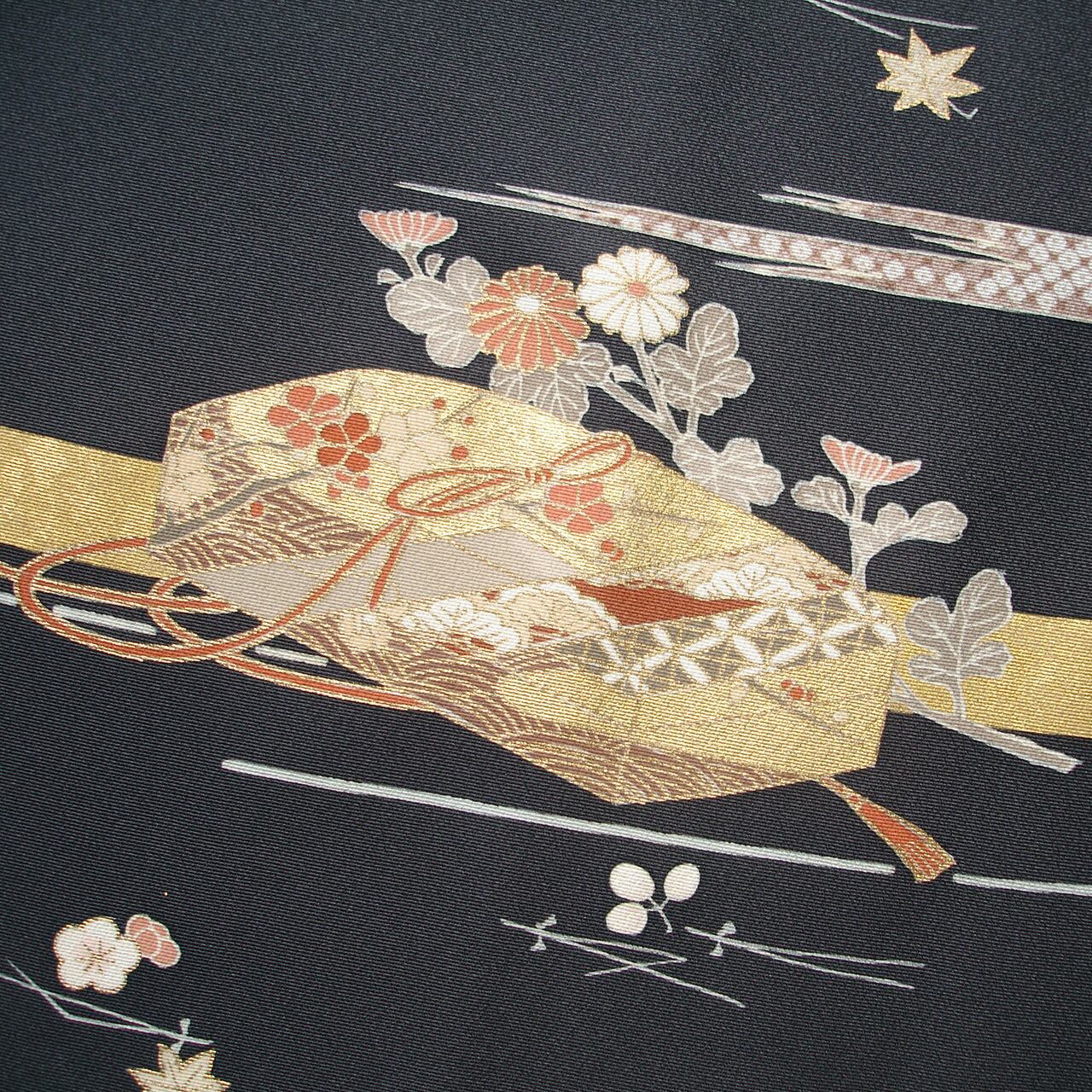 訪問着 文箱 紺鼠 手描友禅 正絹