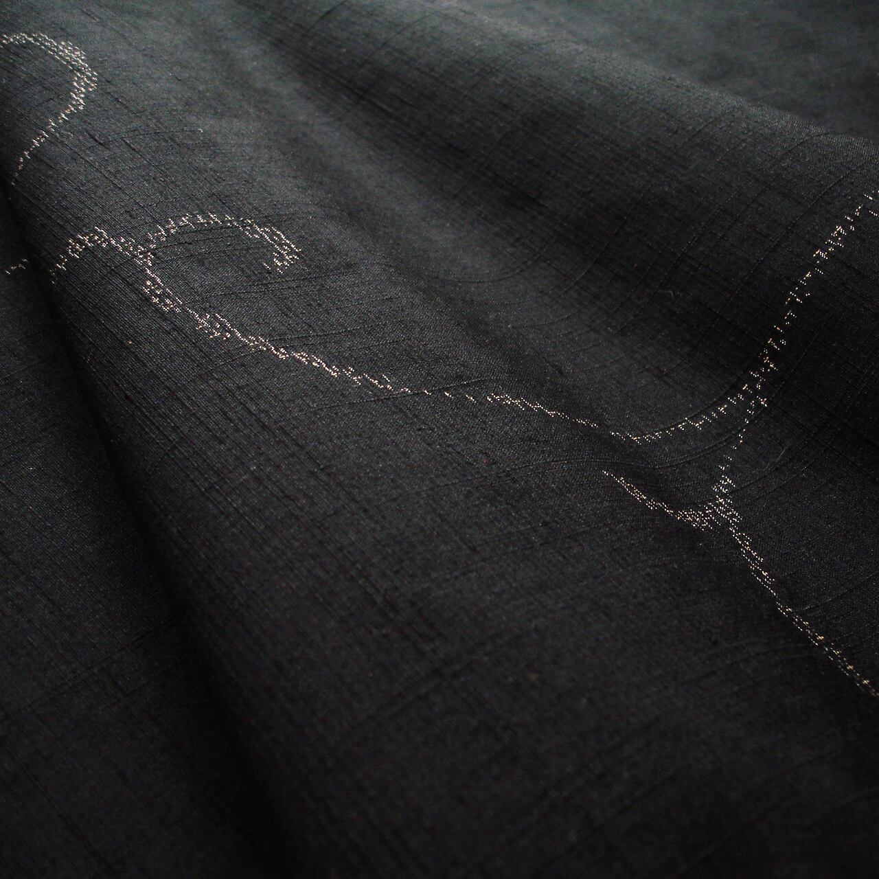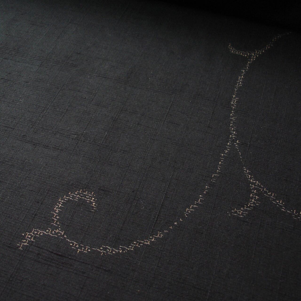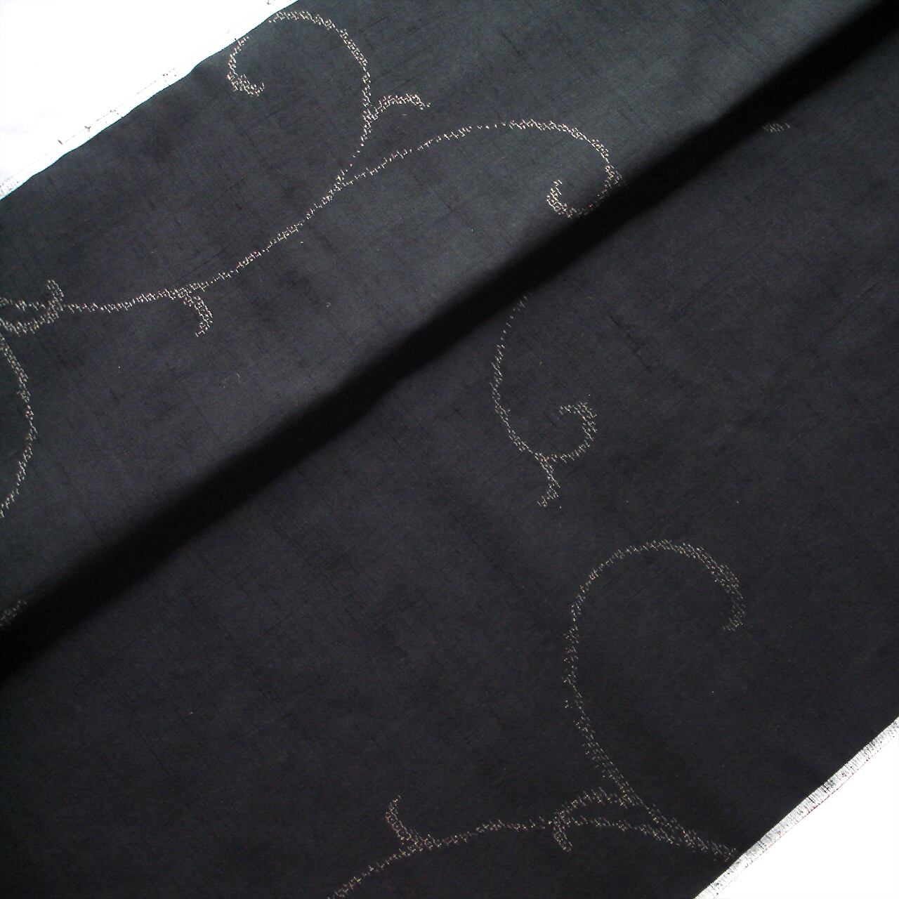 黒地に蔓唐草文様の紬着尺です。