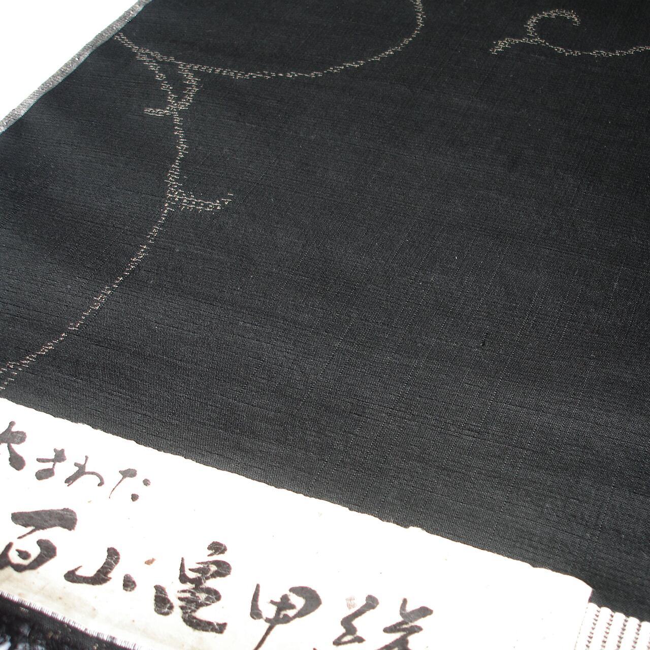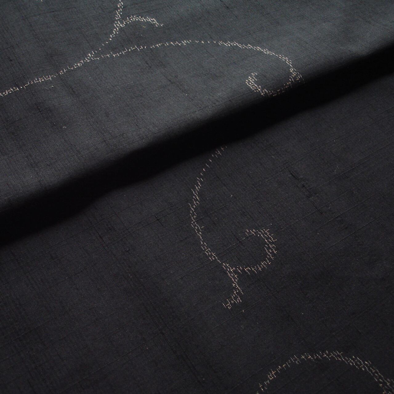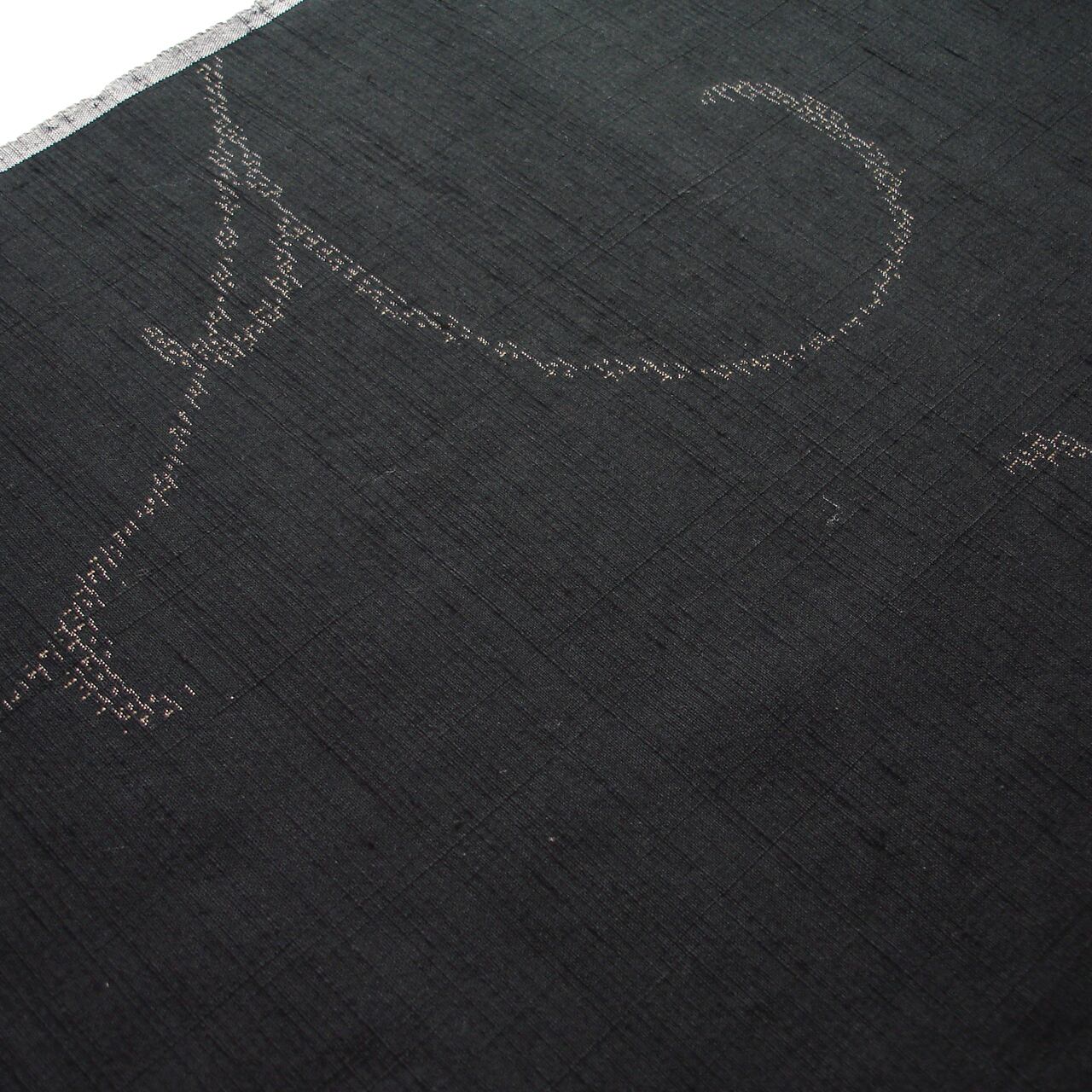 黒地に蔓唐草文様の紬着尺です。