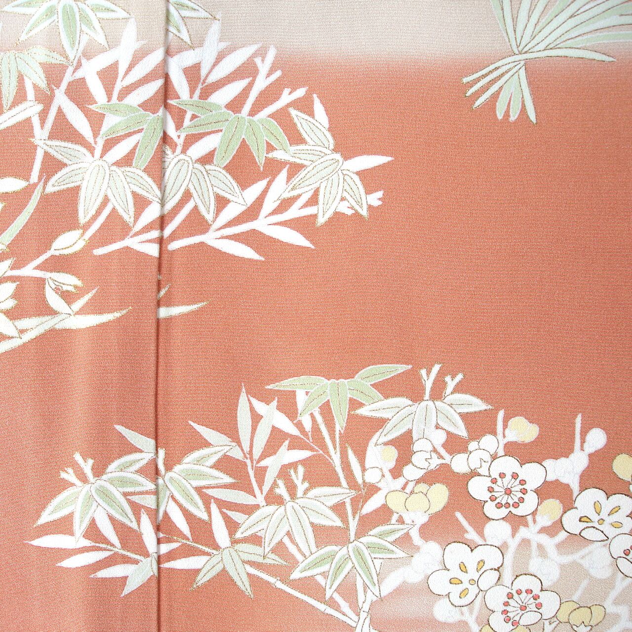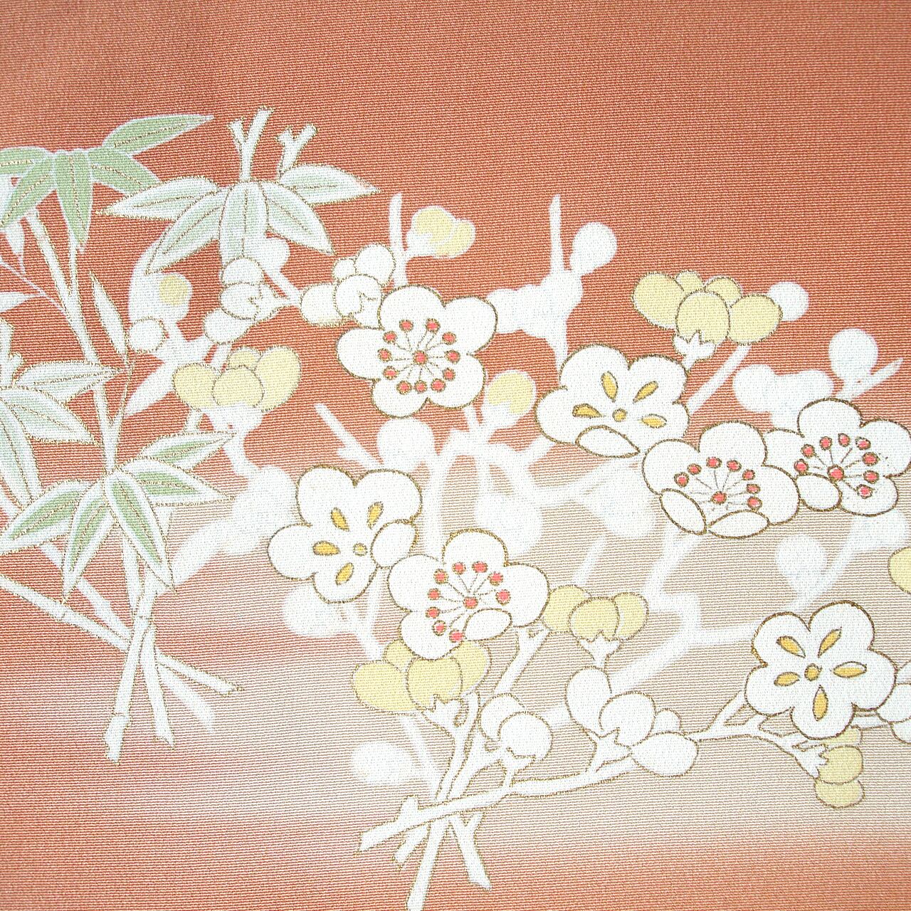 色留袖 花扇 洗朱色 手描友禅 正絹 四君子